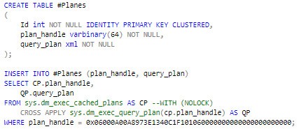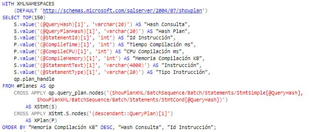 Creamos una tabla temporal y añadimos sólo uno de los planes en caché grandes: